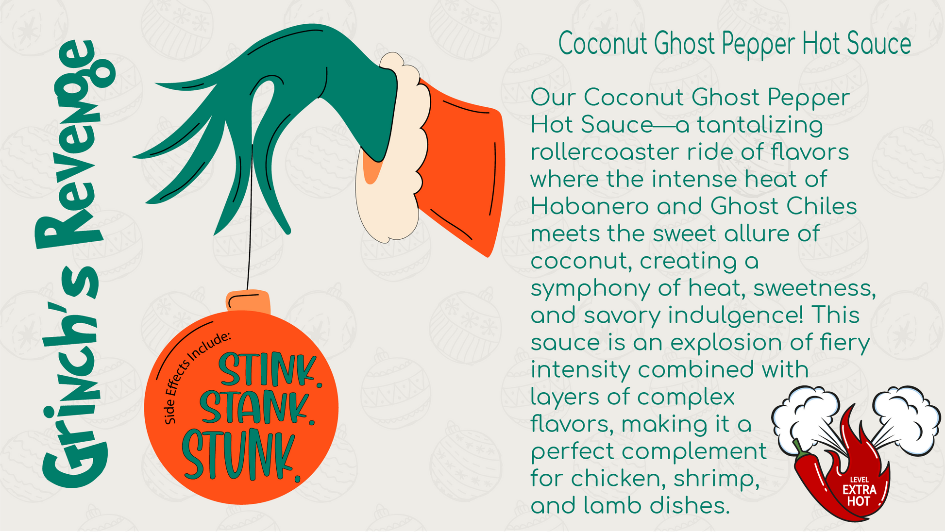 Looking for a unique and flavorful way to spice up your holidays? Our Hot Sauce Candy Cane is the perfect festive gift, stocking stuffer, or holiday decoration for the spice lover in your life! This playful plastic candy cane is filled with four mini hot sauces, each offering a fiery burst of flavor to heat up your holiday meals or gatherings.