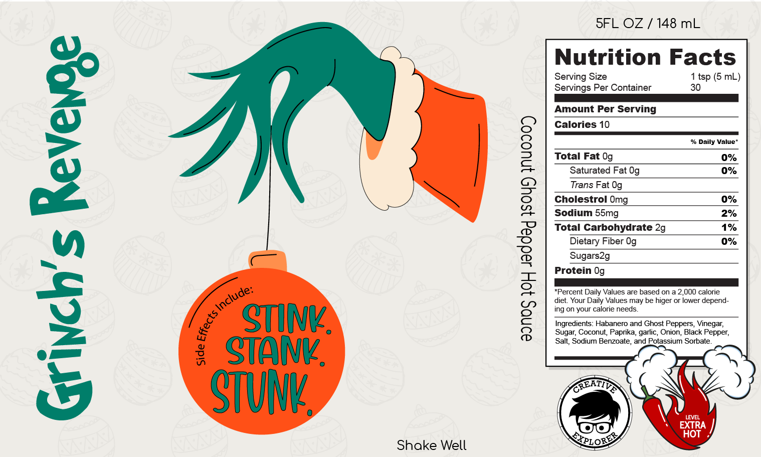 Grinch’s Revenge Coconut Ghost Hot Sauce - Spicy Christmas Hot Sauce - Fun Stocking Stuffer - Gourmet Hot Sauce Gift for Food Lovers