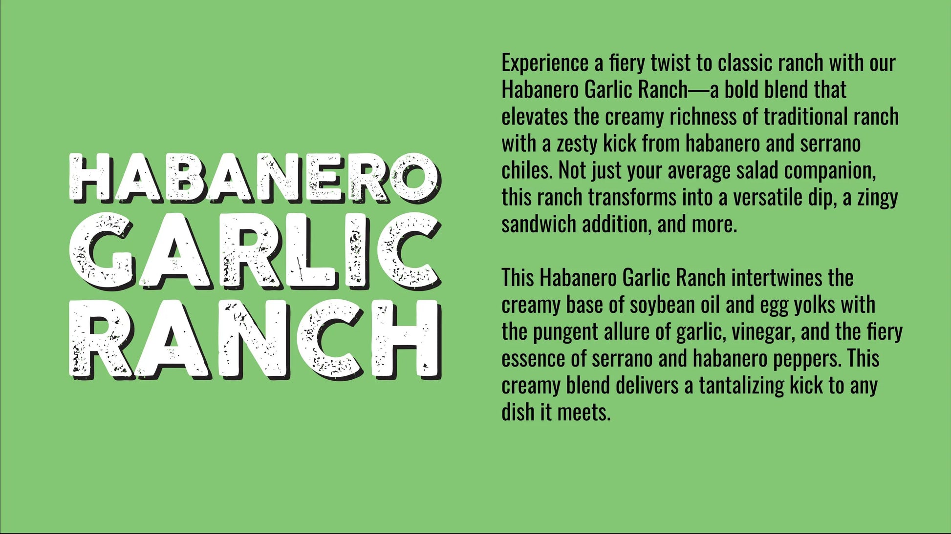 Unleash flavor on your wild culinary expeditions with Habanero Garlic Ranch! This flavor-packed dressing is the perfect companion for adventurers seeking bold taste on their flavorful conquests.