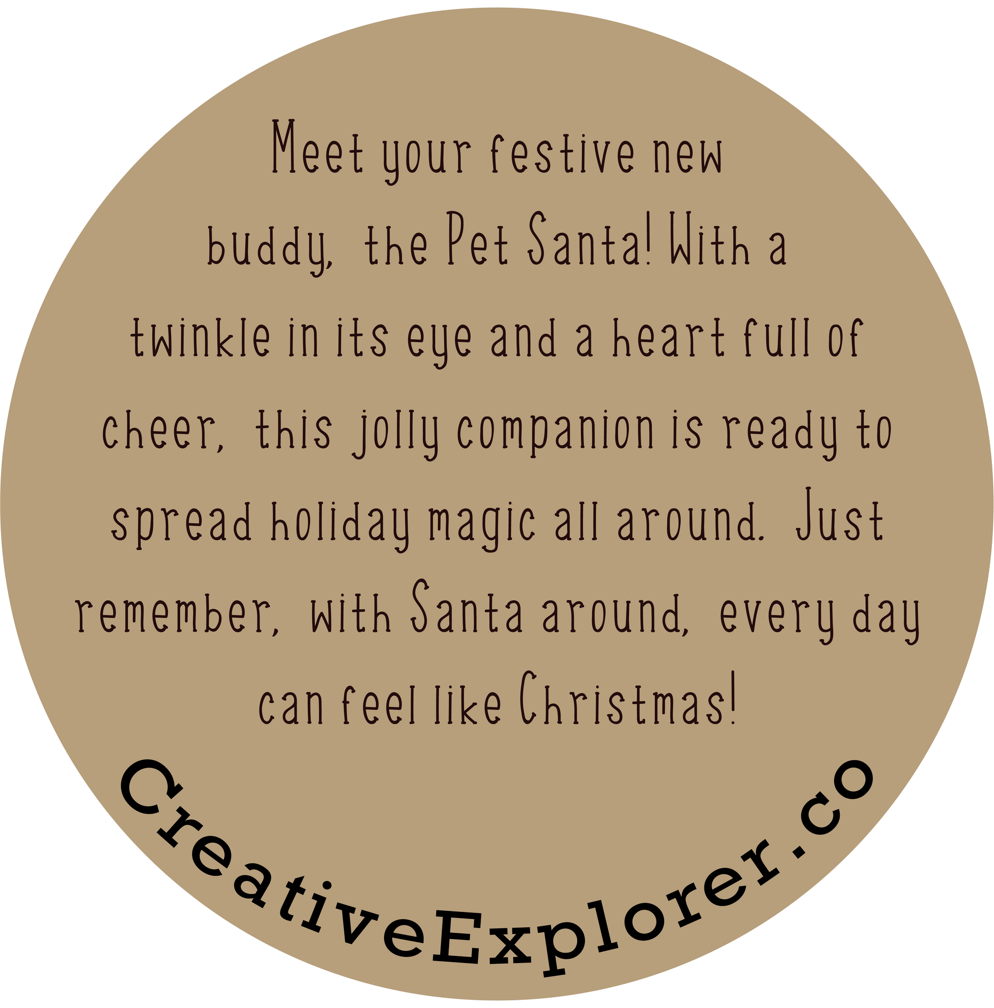 Standing at an adorable 1.8" tall, Pet Santa is crafted from durable, easy-to-clean PVC, ensuring it stays in perfect condition through all the holiday fun. Whether it’s sitting on a mantel or adding festive flair to your desk, Pet Santa is here to spread joy.